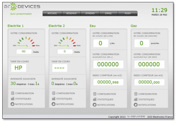 Grâce à Eco-Devices, vous pourrez suivre vos consommations d'électricité, d'eau et de gaz directement par le biais de votre réseau local.