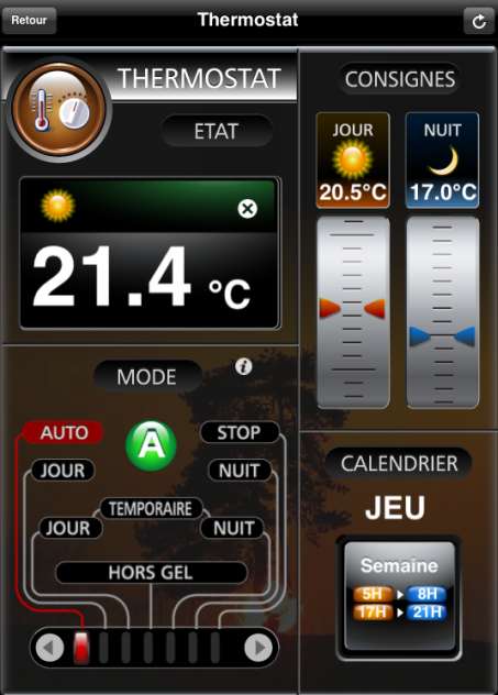 Voici un aperçu de l'interface de contrôle du thermostat depuis l'interface de l'application iPhone :